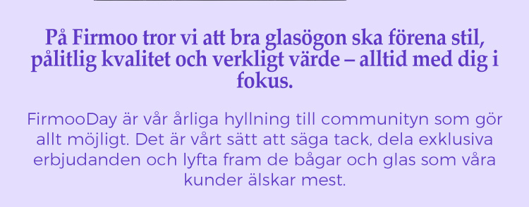 🎉Förhandsstart av FirmooDay! 40% rabatt på glas + 20% på bågar | Kod: PRE