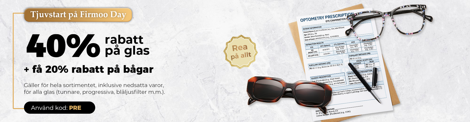 🔥FIRMOODAY REA: Upp till 70% rabatt på bågar & 20% på glas | Kod: FIRMOODAY